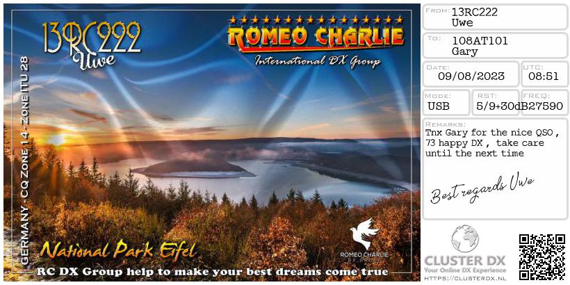 Confirmed contact with Uwe 13RC222
