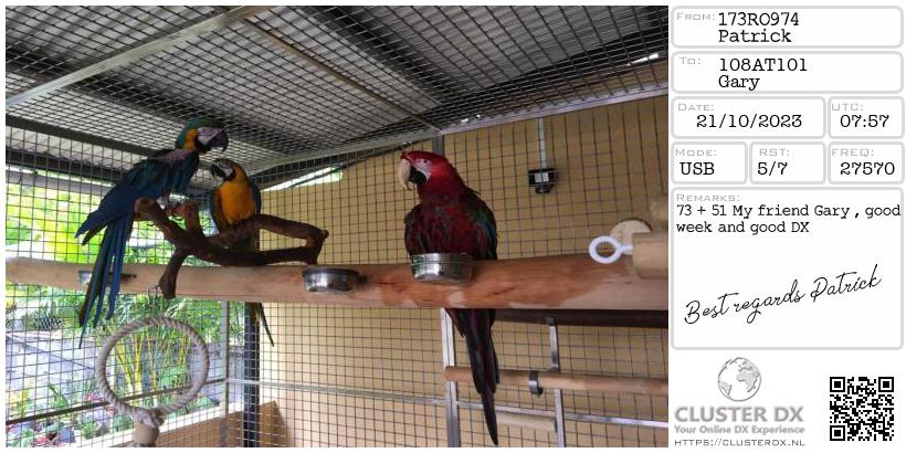 Confirmed contact with Patrick 173RO974 Réunion Island.